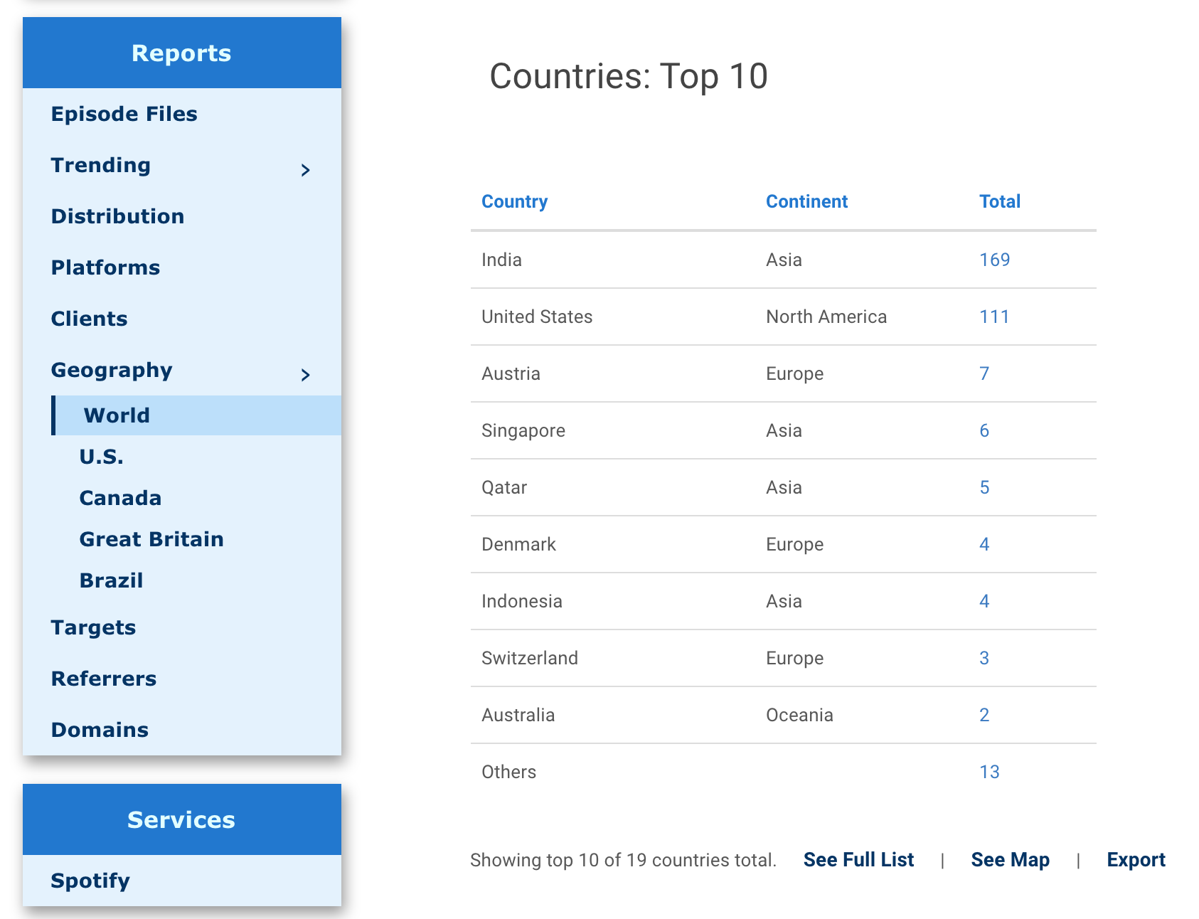 Distribution report from Blubrry